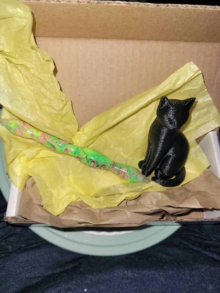 My black cat covverminder is incredible! It looks so silky!! And my custom turned pen was a huge surprise!! The slimness is perfect for me and the colors turned out to be Wicked colors, lighter shades, and gorgeous!!